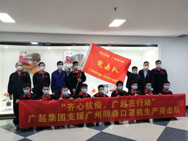 2020年3月6日,我司接到廣州市工信委發(fā)出的調(diào)配緊急人力,支援口罩生產(chǎn)廠家進(jìn)行生產(chǎn)設(shè)備裝配調(diào)試的通知。因廣州明森因口罩機(jī)調(diào)試人員緊缺,影響產(chǎn)能,希望我司派遣專業(yè)的調(diào)試技術(shù)員緊急馳援?!耙咔榫褪敲?,防控就是責(zé)任”。集團(tuán)黨支部按照董事長要求,迅速成立臨時(shí)工作小組。并在各事業(yè)部的大力支持下,從公司抽調(diào)由機(jī)械、電氣技工組成的十一名骨干組成支援明森口罩機(jī)生產(chǎn)突擊隊(duì)。
